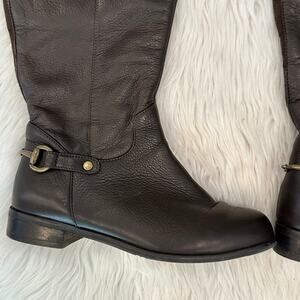 Ros Hommerson Knee High Leather Boot Gold Horsebit Flat Riding Boots
