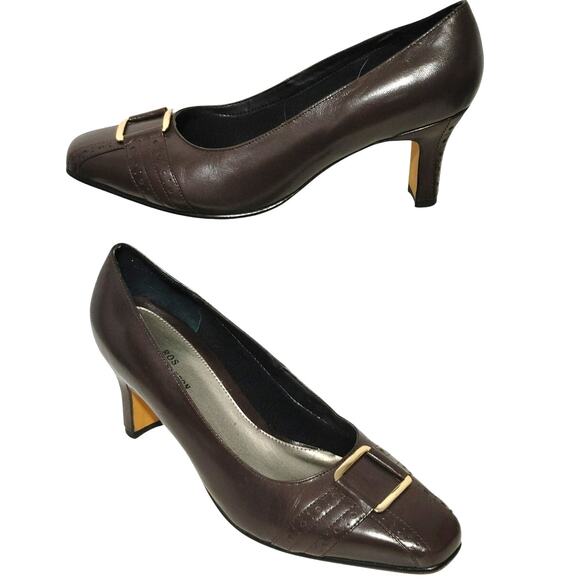 Ros Hommerson Pumps Brown Leather Heeled Slip On Heeled Shoes Womens 6.5