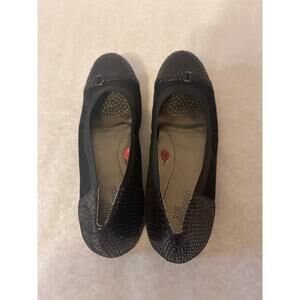 Ros Hommerson Rosita Black Leather with Snake print Ballet Flat Size 7.5 women
