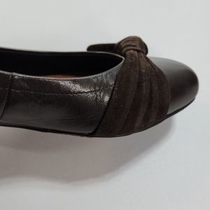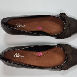Ros Hommerson Tao Shoe Brown Leather Suede Bow Women's 8M Low 1.5" Heel Wedge