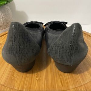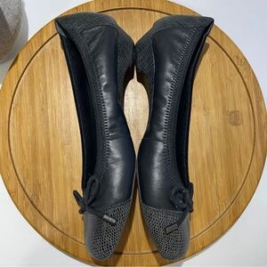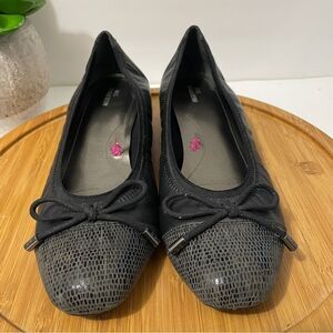 Ros Hommerson Tasha Black Leather Cap Toe Ballet Flat 10W Dressy Bow Snakeskin