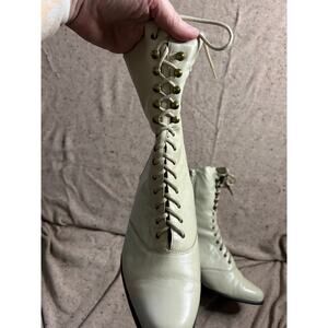 Ros Hommerson Vintage Cream/Bone Leather Victorian Goth Witchy Boots 9 WIDE