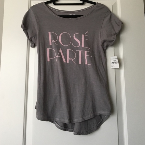 comfy, never worn, feminine tshirt... from website : Rolled sleeves and a ballet neck are cute and casual on a hi-lo tee., Ballet neck, Short sleeves, Approx. 22 front length, 26 back length,