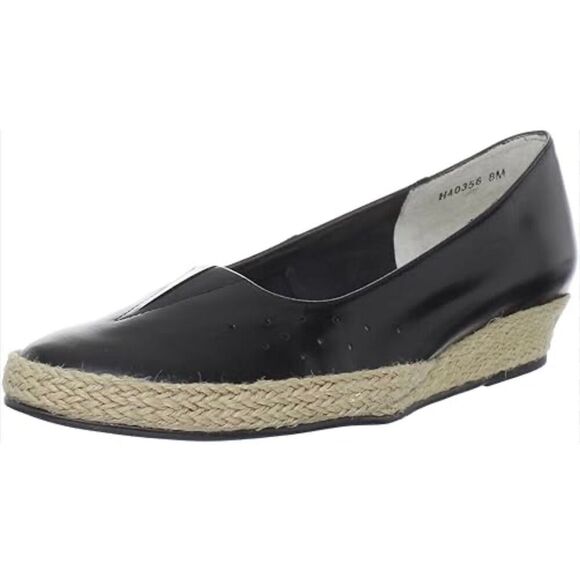 Ros Hommerson Envy black leather espadeille wedge heel 9