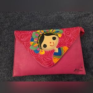 Rosa Mexicano Hand-Painted Women's Crossbody or Covertible Clutch