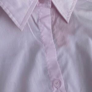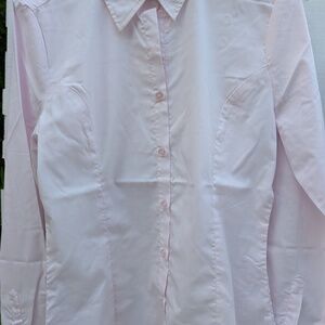 This is a Pink button down top from the brand Rosa York made in Vietnam out of 70% Cotton 30% Lycra.