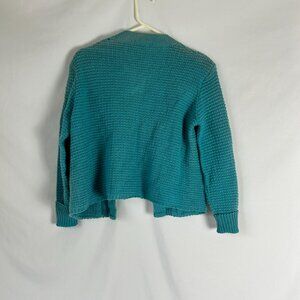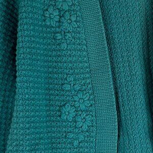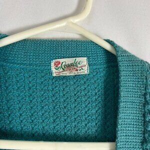 RosaLee Vintage Wool Cardigan Crewel Embroidered Turquoise L (Holes)