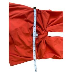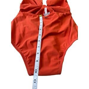 Turn heads at the pool or beach with this stunning orange one piece swimsuit from Rosachá. Crafted in Brazil, this chic swimsuit features a flattering plunge neckline with a trendy knot front detail and a low-cut back for an elevated, fashion-forward look.