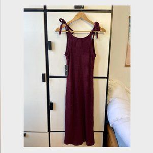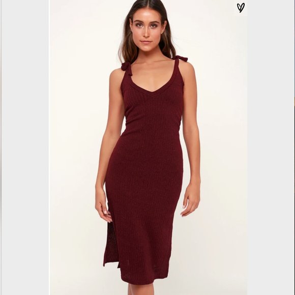 Rosaleen Burgundy Tie-Strap Ribbed Knit Midi Dress
