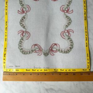 Rosalie Peters hand painted needlepoint canvas, pattern #M282. Red bows and berries with greenery. 18 mesh, 12" x 14". Includes needle and edges are taped.