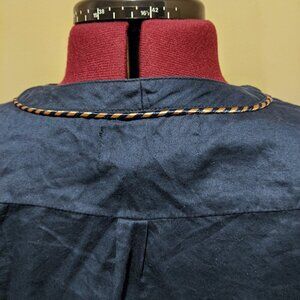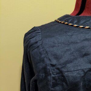 Delicate rope-style trim along the neckline and placket adds a handcrafted feel, while the linen fabric keeps it light and breathable—ideal for layering or wearing solo.