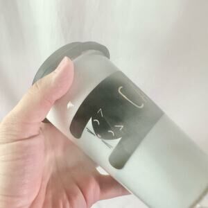 Good used condition with mild wear, especially on the gold stripes. Features a black lid and cup is in mainly white, with black cats and pink & gold accents. See pictures for details and measurements.