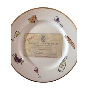 Rosanna 8" Plates Wine Chateau Haul-Bages & Lafaurie-Peyraguey Set Of 2 Italy