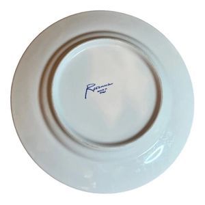 Rosanna branded vintage Italy made wine themed salad plate set. Lot of 8, NOTE: 2 are slightly different styles than the other 6! The designs are based off of the wine labels. Each measures approximately 7.75” in diameter.