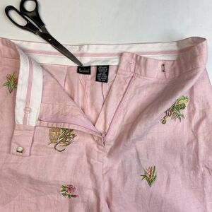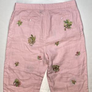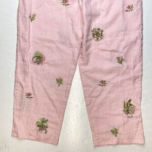 Rosanna 100% Linen Wide Leg Cropped Pants 14 (32"Waist) Pink Embroidered Monkeys Tropical Girly Fun Animal Pants With Pockets And Zipper Closure. Casual Lounge Leisure Beach Summer Vacation