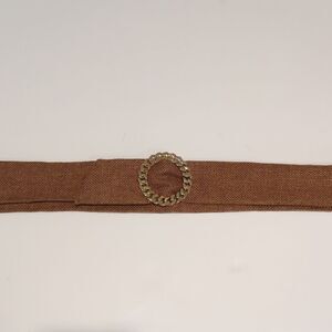 Rosantica's 'Cinderella' belt beautifully combines rustic and polished elements. It's made from durable burlap in an elongated silhouette and has a gleaming gold-tone buckle cast in the shape of flat chain links. Knot the slack or leave it to drape