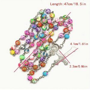 Rosary Necklace Floral 3mm Beads with Silver Crucifix & Mother Mary NWT