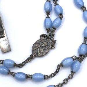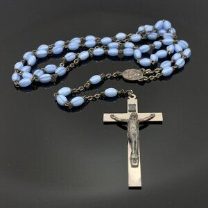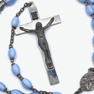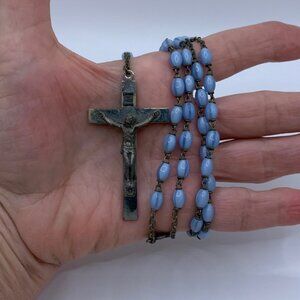 Rosary Vintage Blue Glass Catholic Rosary Crucifix Mary Jesus