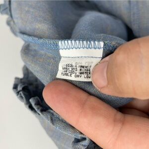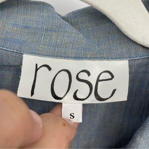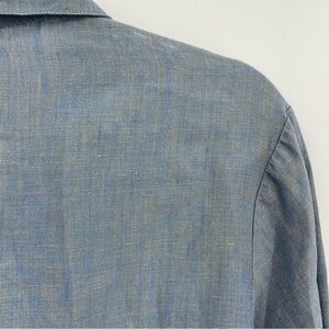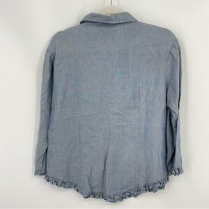 Rose 100% linen blue button front collar shirt ruffle hem Sz S