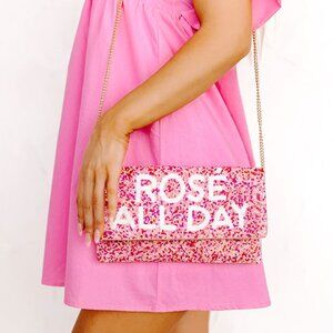 Rose All Day Beaded Pink Seed Beaded Crossbody Chain Bag Clutch Handbag NEW