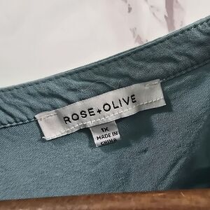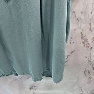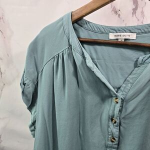 Rose And Olive Top Womens 1X Blue Blouse Button Henley Notch V Short Sleeve Cap