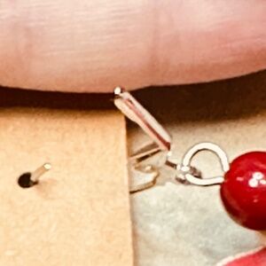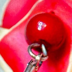Large pink & cream polymer Clay dangle earrings with red bead behind Rose on lever back hooks. Vintage. EUC.
