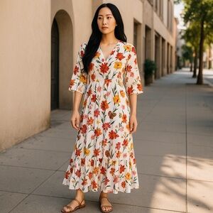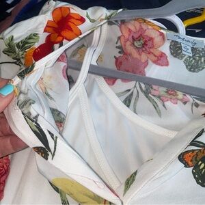 Rose Beverly. Embrace elegance with this stunning floral print maxi dress. Perfect for any occasion, this dress features a vibrant mix of colors that add a touch of sophistication to your wardrobe. Also comes with slip cover under the dress. New without tags. Measurements are in the pictures.