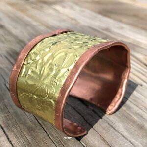 Thank you for looking at this d handmade solid copper cuff bracelet. I used raw pure solid copper , embossed brass and forged it