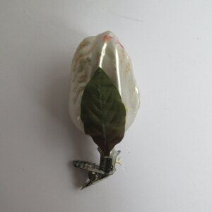 Vintage Glass Rose Bud Flower Clip On Christmas Ornament