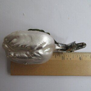 Rose Bud Flower Glass Clip On Christmas Ornament White Glitter Vintage