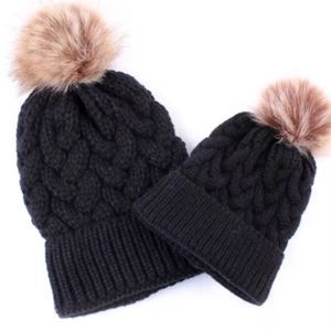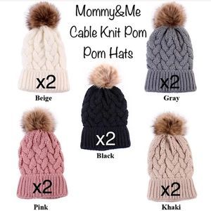 Rose Cable Knit Beanie with Pom Pom Adult & Child Winter Hat Set