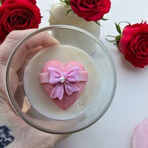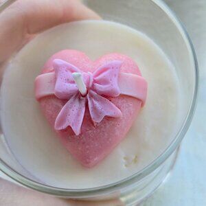 In a realm where love meets light 💗 this handcrafted soy candle holds a secret heart.