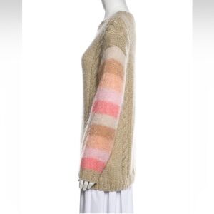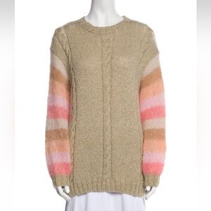 Rose Carmine Tan Neutral Pink Stripe Sleeve Oversized Pullover Sweater sz 2