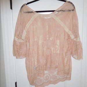 Rose Colored Lace Shirt with Buttons