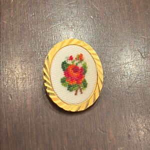 Rose Crosstitch Floral Brooch