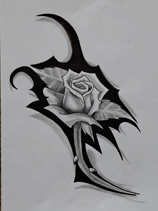 An ink and shaded rose design.