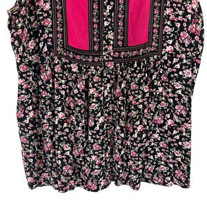 Rose Floral Pattern Tunic Sleeveless Colorblock Hot Pink Green Black White Flowy