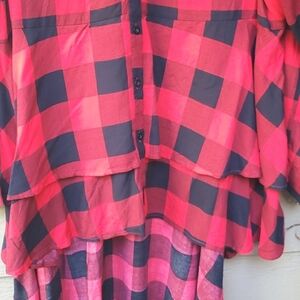 Rose Gal Buffalo Plaid Button Down Hi LO Tunic neW NWT