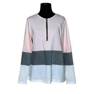 Rose Gal pink silver white color block long sleeves pullover size Small