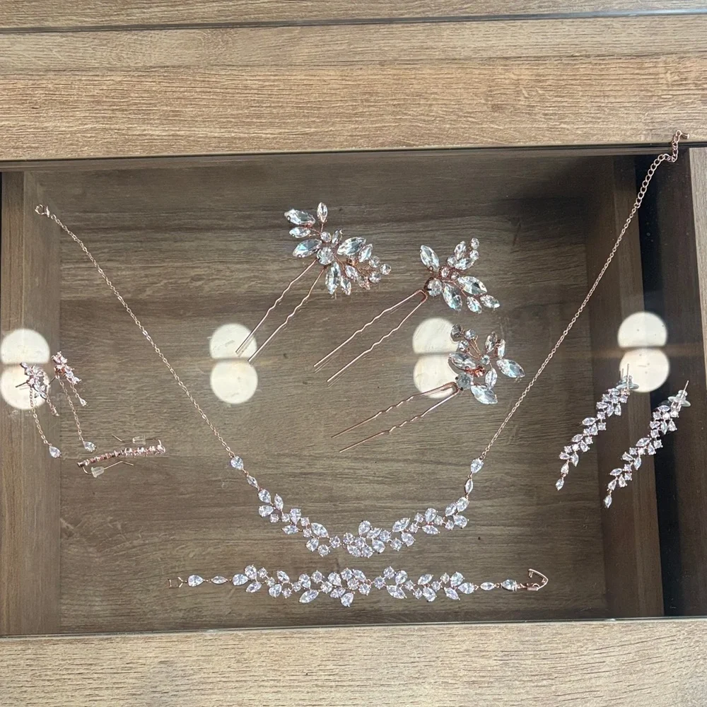 Enhance your look with this stunning rose gold accessory set. Perfect for adding a touch of elegance to any look.
