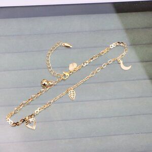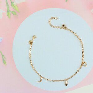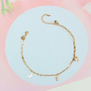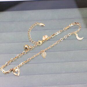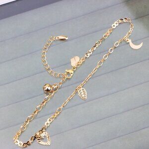 "Rose Gold Anklet with Heart, Leaf & Moon Charms, XPAL1046