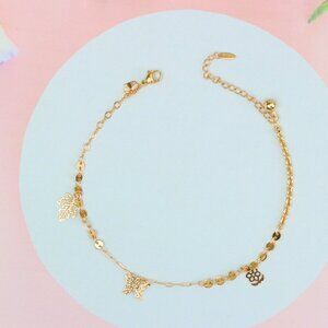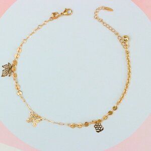 "Rose Gold Anklet with Leaf & Butterfly Charms, XPAL1163