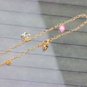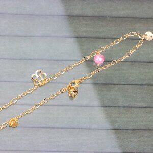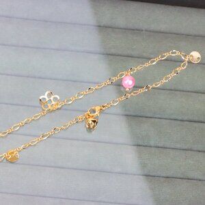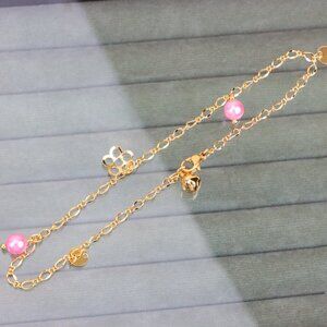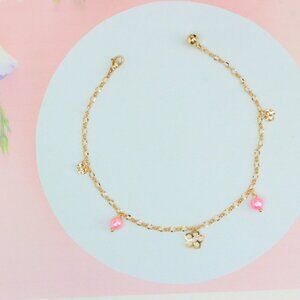 "Rose Gold Anklet with Pink Beads & Flower Charm, XPAL1168