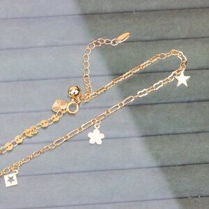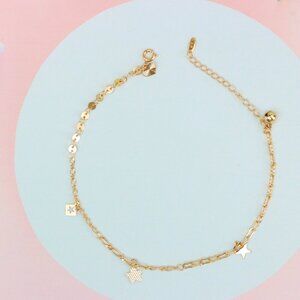 "Rose Gold Anklet with Star Charms & Shiny Links, XPAL1170
