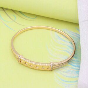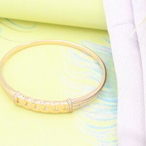 Modern and edgy with a hint of sparkle, this rose gold bangle features a chunky chain centerpiece flanked by crystal-studded bands for a sleek, luxurious look.