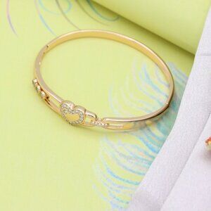 Romantic and radiant, this rose gold bangle features a sparkling heart centerpiece with crystal accents, perfect for expressing love and style.