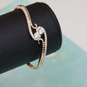 Rose Gold Bangle with Dual CZ Stones and Swirl Detail, XPBL0540