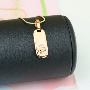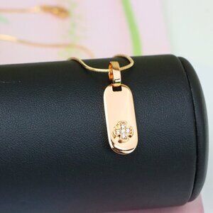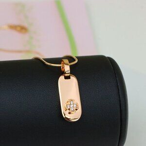 Sleek rectangular pendant with a mini crystal cross for subtle elegance.