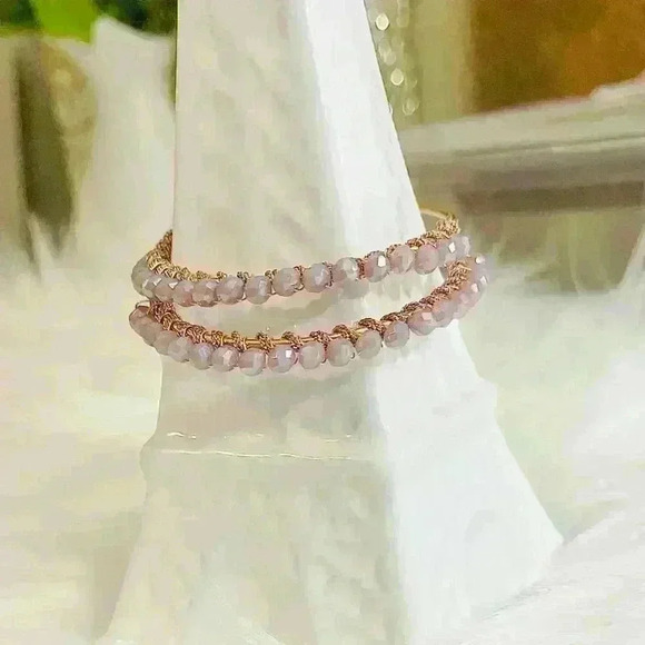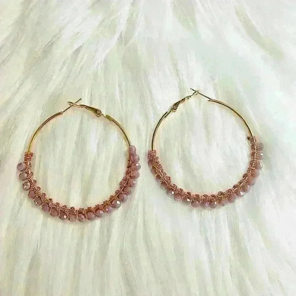 Modern Chic Rose Gold Beaded Hoops in Rose Gold