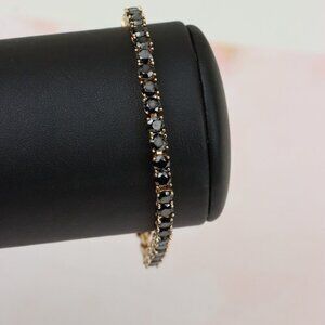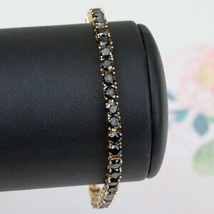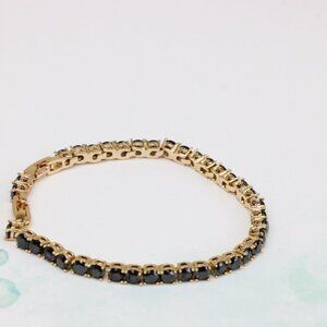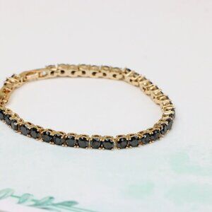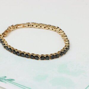 "Rose Gold Black Stone Tennis Bracelet in Gold Plated Brass, XPBL0668
